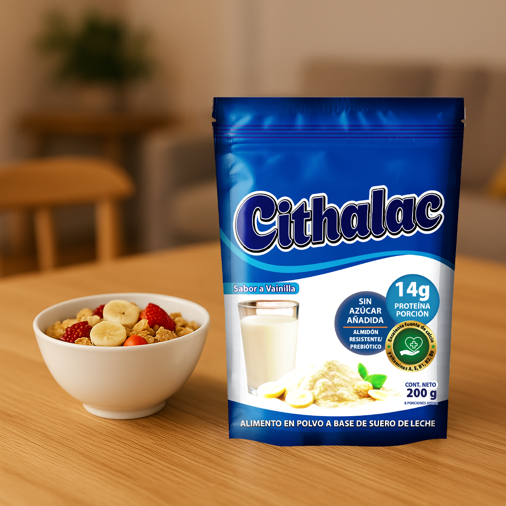 CITHALAC es un alimento en polvo versátil y eficaz desarrollado para satisfacer las necesidades de toda la familia, incluyendo: Niños en etapa de crecimiento, madres lactantes y gestantes, adultos mayores y deportistas. Nuestra fórmula de CITHALAC no contiene azúcares añadidos; los azúcares presentes proceden de fuentes naturales asegurando un perfil nutricional óptimo.